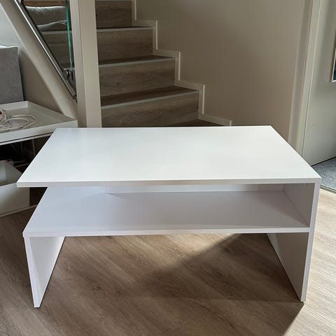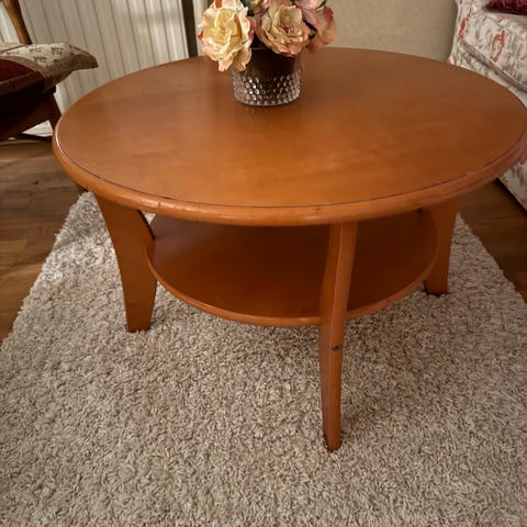 Uudenveroinen, päädyttiin itse toiseen vaihtoehtoon ja tämä jäi vaille käyttöä. Ostettu uutena Porvoon Vaihtokalusteesta. Materiaali puuviilu, sävy tammi, metalliset jalat.