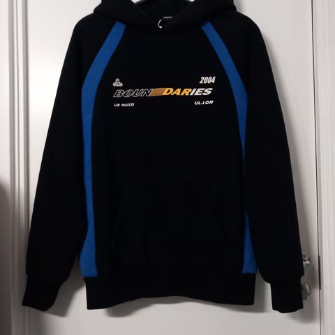 Musta oversized huppari rohkealla tekstiprintillä ja käärme-kuvioilla. Edgy streetwear-tyyli, kengurutasku edessä.