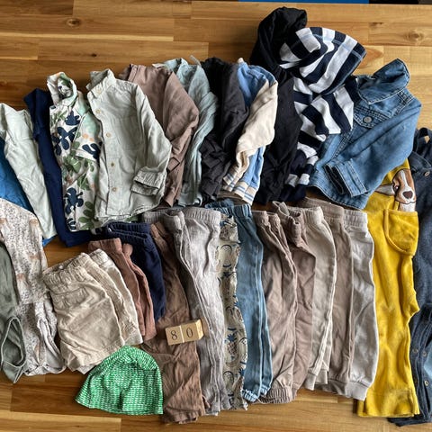 Poikien vaatepaketti, koko noin 80. Kirjava kokonaisuus erilaisia vaatteita Sopii noin 80 cm pituiselle lapselle. Vaatteet ovat eri väreissä ja kuoseissa. Merkkejä ei ole yksilöity.