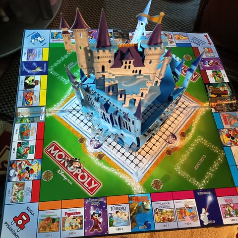 Klassikko lautapelin näyttävä Disney-versio. Kaikki mahdolliset osat ovat tallessa ja erittäin hyvässä kunnossa, ainoat kauneusvirheet ovat itse pelilaudasta nousevassa linnassa oleva kuulakärkikynällä tehty pieni kirjoitus ja laatikossa olevat kulumat.