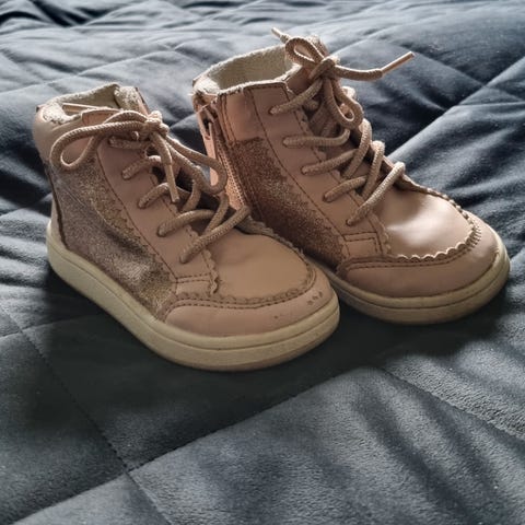 H&M lasten kengät, koko 23. Unisex-malli, ruskeat kengät tarrakiinnityksellä. Päällinen ja vuori tekstiiliä/synteettistä materiaalia, kumipohjat. Ollut meillä lähinnä kauppakenkinä. Nouto Vantaanlaaksosta.