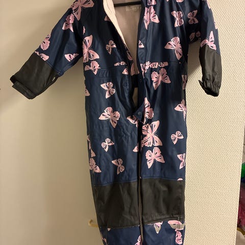 Heijastimet ja lahkeiden sisäsaumat kuluneet. Ainakin toinen jalkalenksu rikki, mutta vaihdettavissa.