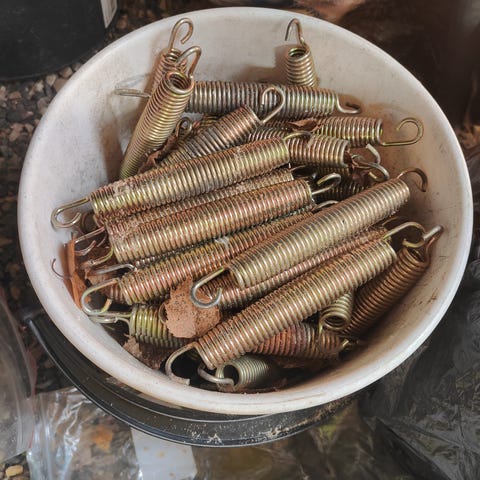 Jalat galvanoitua terästä, runkoputken halkaisija 38 mm. 54 galvanoitua jousta. Mukana reunapehmuste ja sisäpuolen turvaverkko, jonka yläosassa vahvikerengas. Enimmäispaino 100 kg.