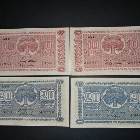 2 x 5 mk ja 2 x 10 mk 1939 litt D