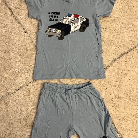 Kalastusaiheinen shortsipyjama. Nämä oli jotain lasten piirustuskilpailun kuvia.