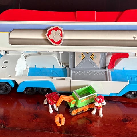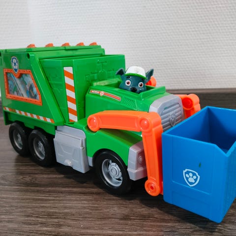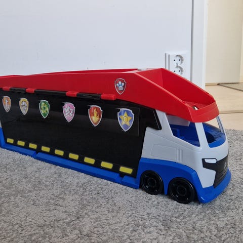 Myydään Ryhmä Haun rekka ( korkeus n 19cm ja pituus n 68cm) perälauta puuttuu. Äänet ja hissi sisällä toimii. Ajokit 6kpl. Pennut kiinteitä ajokeissa.