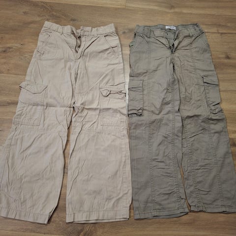 Lindexin beiget reisitaskuhousut 134cm sekä H&M mustat reisitaskuhousut 134cm. Siistissä käytetyssä kunnossa. Hinta 7e/housut tai yhteensä 12e.