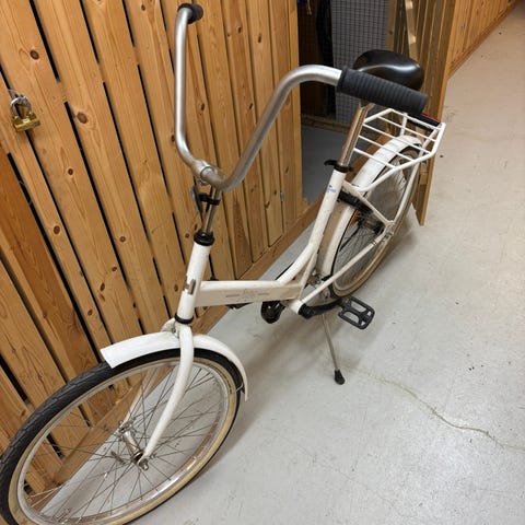 Pyörä on ehjä. Pientä kulumaa ja satulassa pieni vekki, mutta ei ajoa haittaa.