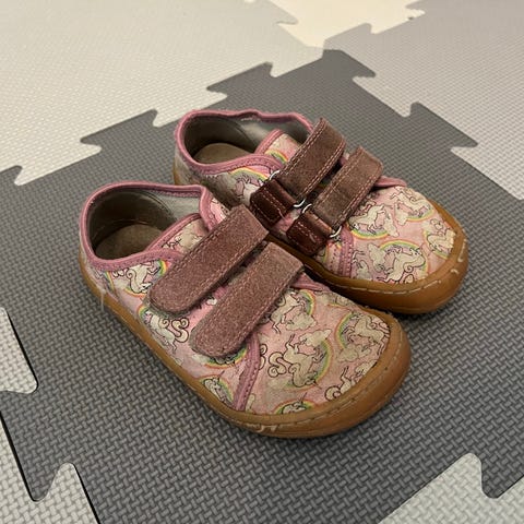 Uutena ostetut, yhdellä lapsella muiden kenkien ohella melko vähän käytetyt froddon paljasjalkakengät. Koko 25, pohjallisen mitta n. 16,5cm.