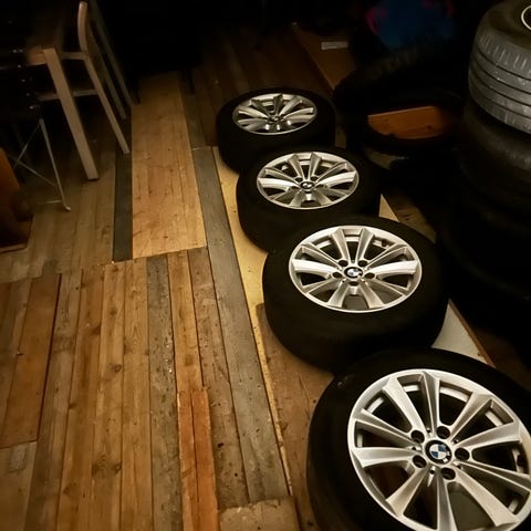 Siistit ja ehjät Bemarin alkuperäiset vanteet 225/45-17 Nankang kesärenkailla. Renkaissa pintaa tasaisesti 2x 6-7mm ja 2x 2-3mm. Vanteet vasta tasapainotettu. Ei suurempia heittoja tai skraaduja. Jotain toki jo mitä käytetyiltä voi odottaa mutta yleisilmeeltään varsin siisti paketti.