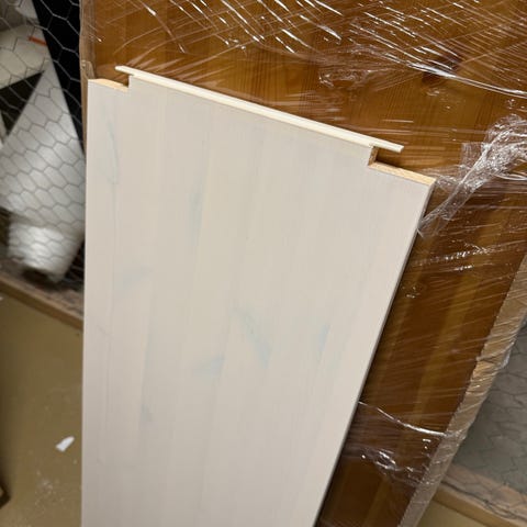 - päätyjä (6kpl.) Yhdessä päädyssä on puun lisäksi käytetty valkoista kovalevyä, muut ovat pelkkää puuta. Osien kunto on vaihteleva.