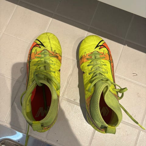 Nike Mercurial jalkapallokengät. Koko EU 36 (US 4Y, UK 3,5, cm 23). Väri vaaleanpunainen liukuvärjäyksellä ja mustilla yksityiskohdilla. Nappulapohja on suunniteltu luonnonnurmelle tai keinonurmelle. Päällinen on synteettistä materiaalia, jossa päälliläppä nauhojen päällä. Kenkien takaosassa vetolenkit helpottamassa pukemista. Soveltuvat nuorille pelaajille jalkapalloharjoituksiin ja -peleihin.