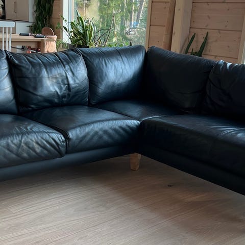Nahka sohvat ja nojatuoli. Verhoiluna musta nahka ja jalkaosissa puuyksityiskohdat. Pehmeästi topatut istuin- ja selkätyynyt sekä leveät käsinojat. Sopii olohuoneeseen tai muuhun oleskelutilaan istuinryhmäksi.