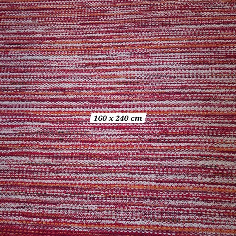 Käsinkudottu, käytön jäljiltä, napakka palttina/ruusukas sinivalko -sävyinen pvl-räsymatto, koko 85 x 230 cm