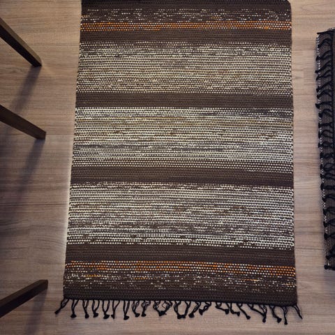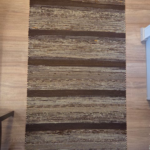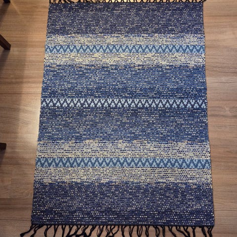 Käsinkudottu sinivalkokirjava pvl-räsymatto