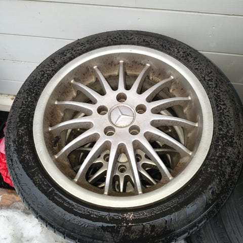 Yhdessä renkaassa runko vaurio kaks vähän parempaa rengasta. Sopii myös muihin mersuihin ML,R ja luultavasti E ja S jos vaihtaa matalammat kumit