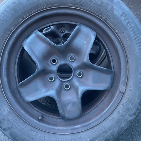 Osassa vanteita kuvien kaltaista kanttari osumaa. Renkaat käyttökelvottomat