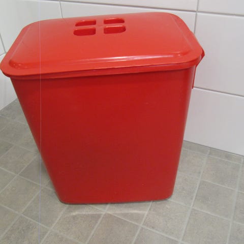 Muovinen pyykkikori/ likapyykkikori, jossa irrotettava kansi. Väri on punainen. Kori on rei’itetty sivuilta ilmanvaihdon parantamiseksi. Soveltuu pyykin tai muun kodintekstiilin säilytykseen esimerkiksi kylpyhuoneessa tai kodinhoitohuoneessa. Tuote on retro Sarvis tuote.