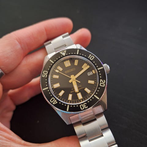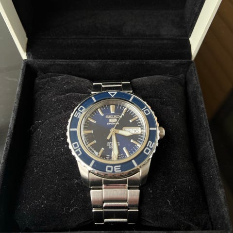 Ostettu täältä torista ja olen kellon toinen omistaja. Kaikki osat ovat alkuperäisiä. Normaalia käytönjälkeä löytyy rannekkeen claspista sekä lasissa myös pienen pieniä skraaduja mitkä ei kuvissa näy kovin hyvin. Bezel hiukan jäykähkö.