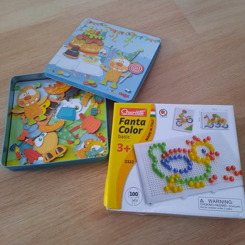 Myydään nuppiaskartelu-setti, jossa 2 lautaa ja lokerikko nuppeja. Tämä on hauska tapa harjoitella hienomotoriikkaa.