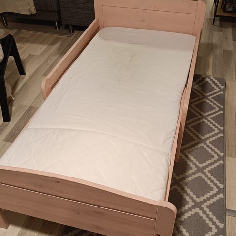 Juniorisänky 70x140 + patja + kosteussuojat + lakanat