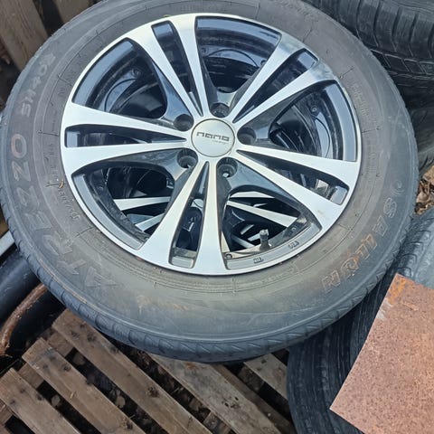 Renkaat ostettu loppukesästä. Paistoleima 4.2025. Vanteet ihan perus siistit. Jonkun Hondan vanteet alunperin. Ollut viimeksi Toyota Corollassa. Et luku 45
