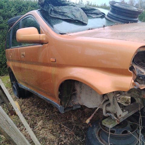 Honda varaosia. Kuvat esittävät purkuautoa, josta on saatavilla muun muassa koriin, jousitukseen, jarruihin, sisustaan ja mahdollisesti moottoriin liittyviä osia. Tarkemmat tiedot, osanumero ja yhteensopivuus on hyvä varmistaa myyjältä ennen ostoa.