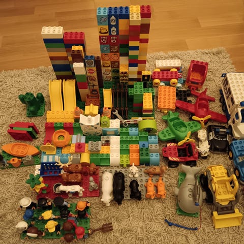Siitä löytyy lapsilta ylijäänyt iso kasa dubloja löytyy: hahmoja,palikoita,eläimiä ja koneita. Jos kiinnostaa erikseen ostaa jotain tiettyjä voi kysellä viestillä.