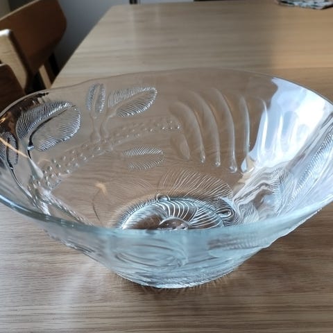 Myyn kuvassa näkyvän lasikulhon. Tämän on suunnitellut Oiva Toikka, Nuutajärvelle. Kulho on Pioni sarjaa. Korkeus 12cm, halkaisija 27cm. Täysin ehjä.