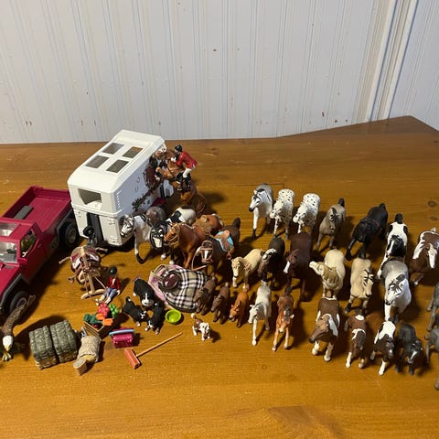 Myydään iso Schleich-hevospaketti, jossa paljon hevosia, varsoja, hahmoja ja erilaisia tallitarvikkeita. Tästä kerralla suuri kokonaisuus hevosleikeistä kiinnostuneelle – ei tarvitse kerätä osia erikseen.
