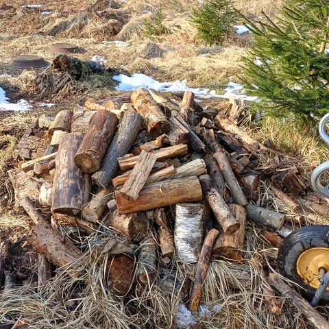 Syksyllä kaadettuja 2 m pitkiö männynrankoja, n.0,75 m3. Nouto Kartanonkoskelta, Vantaa
