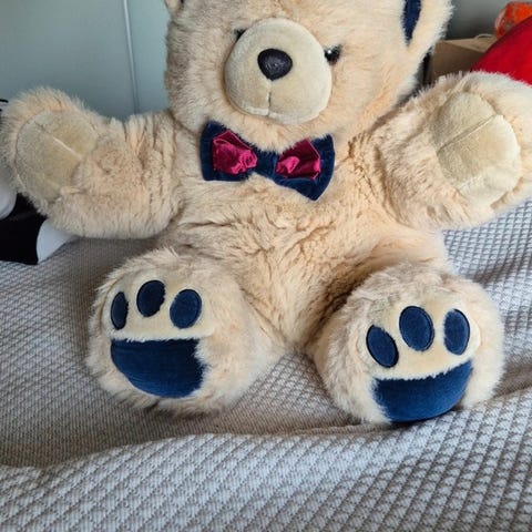 3 suloista pehmolelua vuosikymmenten takaa; apina, nalle ja leijona. Nouto Paistanojantieltä, Nousiaisista.