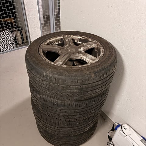 Hyvät renkaat vanteineen. Olleet Toyota Avensiksessa. Kulutuspintaa jäljellä noin 6 mm. 👍