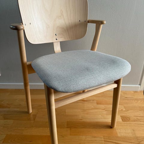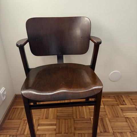 Todella hyväkuntoinen vanha Domus tuoli. Siisti lakkapinta ja täysin ehjä vaikka patinaa löytyykin.
