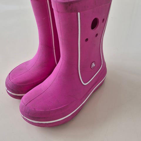 Crocs kumisaappaat tytöille, koko 33-34. Väri pinkki. Saappaat ovat kevyttä ja vettähylkivää materiaalia, jossa on Crocs-logo sivussa. Pohjassa on karkea kuviointi paremman pidon takaamiseksi. Varsissa on kantokahvat, jotka helpottavat pukemista ja riisumista. Sopivat käytettäväksi sateisella säällä ja märissä olosuhteissa.