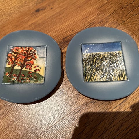 Halkaisija 11 cm hyväkuntoisia ja ehjiä.