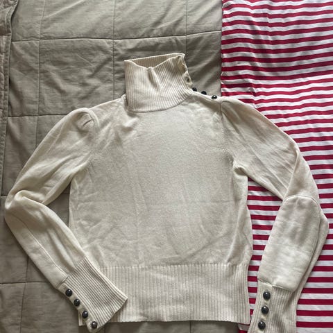 Almada Label (Alma?) pooloneule naisille, koko M. Neule on harmaa ja valmistettu 90 % merinovillasta ja 10 % kashmirista. Mallissa on korkea poolokaulus ja pitkät hihat. Erittäin hyvässä kunnossa, ei ole kutistunut tai huopunut vaan edelleen pehmeä kuin uusi. Ostin second handina eikä valitettavasti päässyt käyttöön.