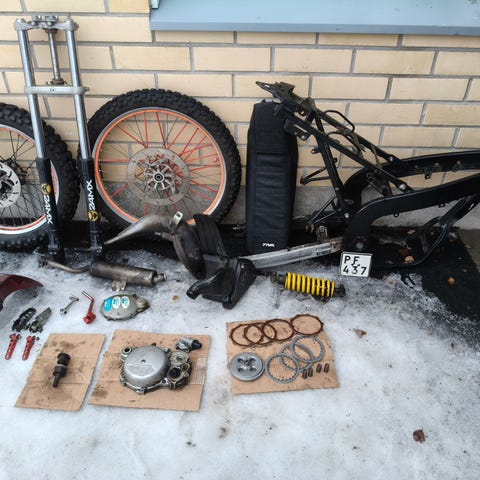 Kilvellinen runko, moottori purettuna hyvässä kunnossa.