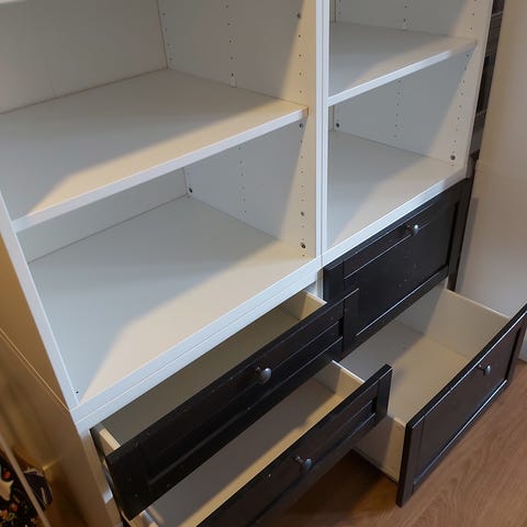 Hyväkuntoinen. Vaatekaappi 60x57x123 cm, lattikko+pöydä taso 90x49x48 cm, kirjahylly 60x57x123 cm. Nouto Korso