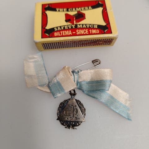 Vanha hopea mitali vuodelta 1914,leimat kuvissa.