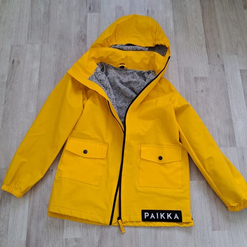 Noin 5 kertaa käytetty sadetakki. Muuten kuin uusi, mutta muutama tumma pieni viiru hihassa.