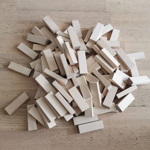 Värillisiä, muovisia rakennuspalikoita. Sopii lasten leikkeihin ja kehittää motorisia taitoja.