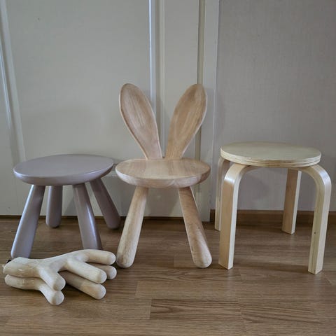 Juniorituoli. Tuolissa on säädettävä istuin- ja jalkataso, jotka voidaan kiinnittää eri korkeuksille sivuissa olevien reikien avulla. Tuolissa on irottettava kaarituki pienile lapsille. Käytönjälkeä löytyy ja vaatii kiristelyä.