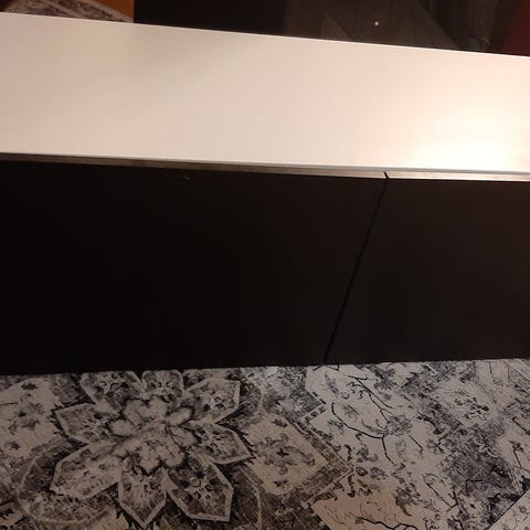 Annetaan Ikean (?) tv-taso, kohtalaisessa kunnossa. Kannesta ei voi nostaa, kansi nousee paikoiltaan. Ei kovin tukeva, mutta ajoi kyllä asiansa.