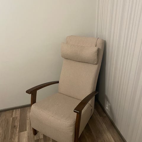 Uudenveroinen, elokuussa 2025 ostettu Seniorituoli Markku. Jäi käyttämättä, kun tuli yllättäen pyörätuolivaihe. Kulkeutuu tarvittaessa Uuraisten ja Palokan seudulle.