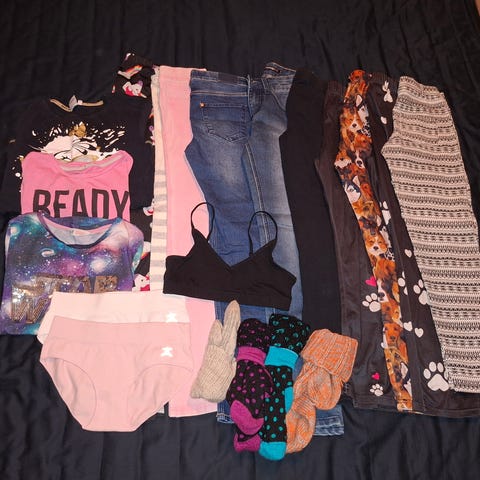Takkeja x3, housuja, paitoja, huppareita, hame