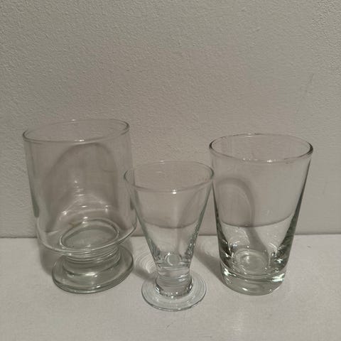 2 kappaletta pieniä jalallisia laseja. Korkeus noin 10,5 cm.