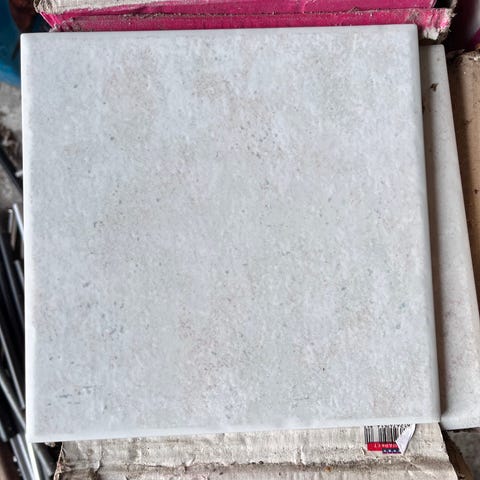 Valkoisia lattialaattoja 104x104mm. 11 levyä. Yhdessä levyssä on 12 laattaa. Haku Sarvvik, Kirkkonummi.
