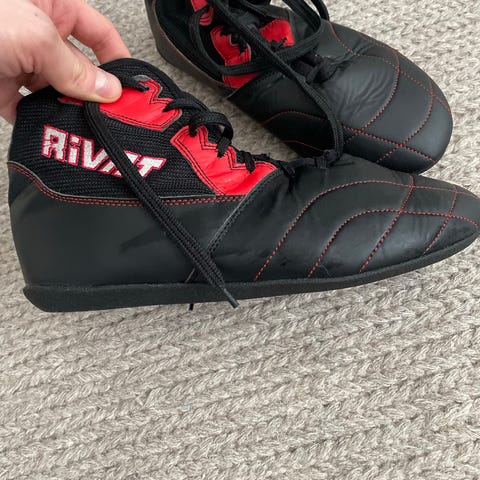 Lonsdale nyrkkeilykengät kamppailulajeihin. Kengät ovat korkeavartiset ja nauhalliset, tarjoten nilkalle tukea harjoittelussa ja otteluissa. Väri on musta, ja kengissä on valkoiset Lonsdale-logot sivuilla sekä pohjassa. Sopivat käytettäväksi esimerkiksi nyrkkeilyssä ja muissa kamppailulajeissa sisätiloissa. Tarkka koko ei käy ilmi ilmoituksen tiedoista, joten ostajan kannattaa varmistaa sopivuus mittojen tai sovituksen avulla.