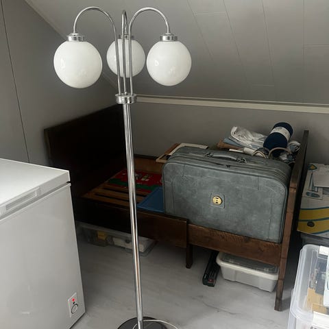 Kaarivalaisin painavalla marmorijalalla ja muovikuvulla.